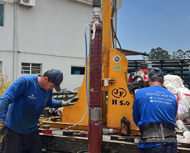 Perfuração de poços artesianos com equipamentos modernos e equipe especializada.