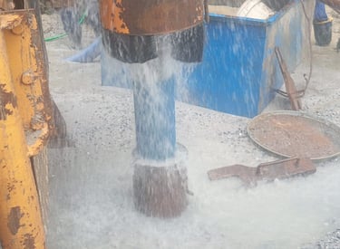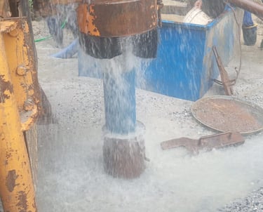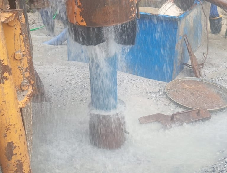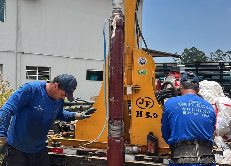 Perfuração de poços artesianos com tecnologia e cuidado ambiental.